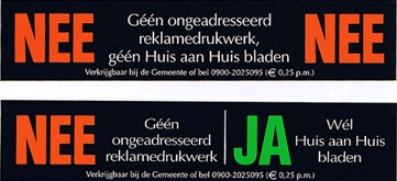 U krijgt dan nog wel de huis-aan-huisbladen. Bij Nudge bestel je een gratis NEE- JA sticker of NEE- NEE sticker.